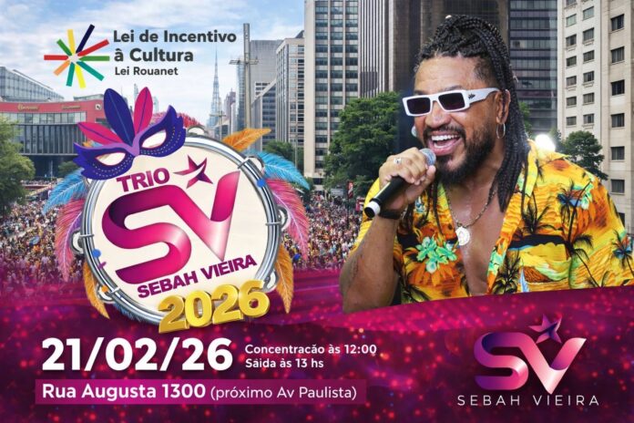 O cantor, ator e produtor Sebah Vieira celebra 8 anos do Trio Elétrico Sebah Vieira no Carnaval de São Paulo e 26 anos de carreira com um desfile especial no dia 21 de fevereiro de 2026, sábado pós-Carnaval. Neste ano, o projeto marca sua estreia na Rua Augusta, na região central da capital, com apoio do Ministério da Cultura.